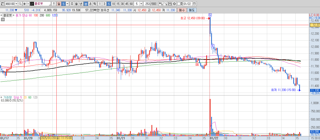 오늘 장초반 갭을 5프로나 띄워줘서 감사합니다 하고 분할매도 했고, 5분봉 5선 깨기 전까지 가져간다는 마인드로 지켜봤는데 무슨 받쳐주는 매물 하나도 없고 주르륵 흘러서 나머지도 바로 팔아버렸다.