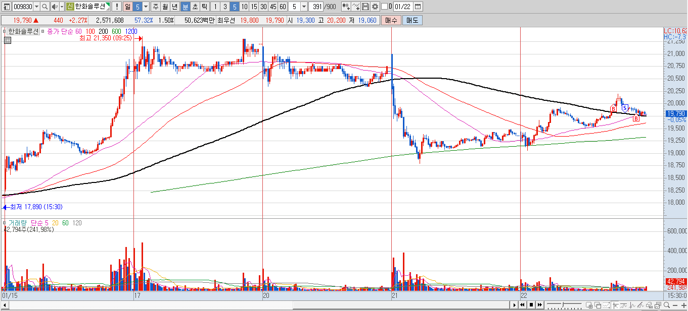 태양광에너지 테마로 트럼프가 태양광 재생에너지가 대단하다고 했을 때 수급한 번 들어온 이후 10일선 닿고 횡보하다가 다시 3,5일선 위로 주가가 올라와 주었는데 기관 수급이 너무 좋았고, 일단 오늘은 외인 기관 양매수에 프로그램까지 매수세가 많았기에 2만원 돌파할 때 호가단위 바뀌니까 시세 좀 나오면 적당히 팔려고 했다가 손절했었고. 그래도 모맨텀 적으로 아직 갈 확률이 높다고 생각해서 종가에 다시한번 베팅하였다.