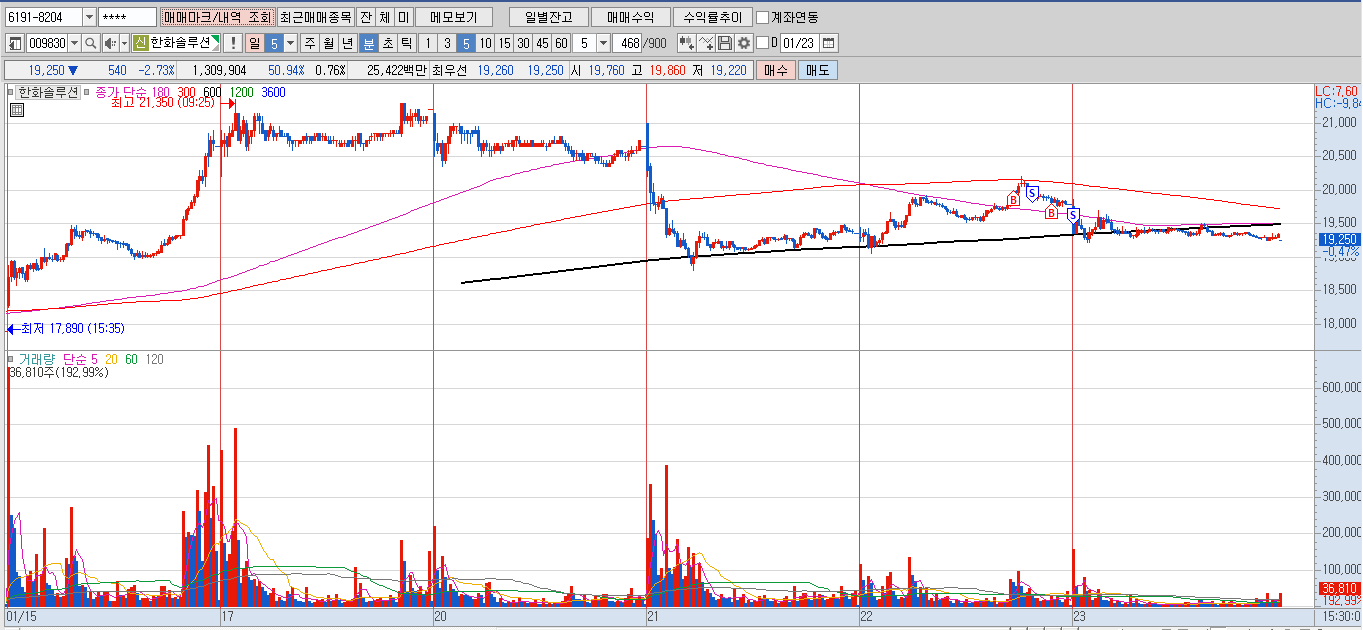오늘 시장 전반적으로 설 연휴가 껴있어서 차익실현 매물이 나오고 있는 것 같다.