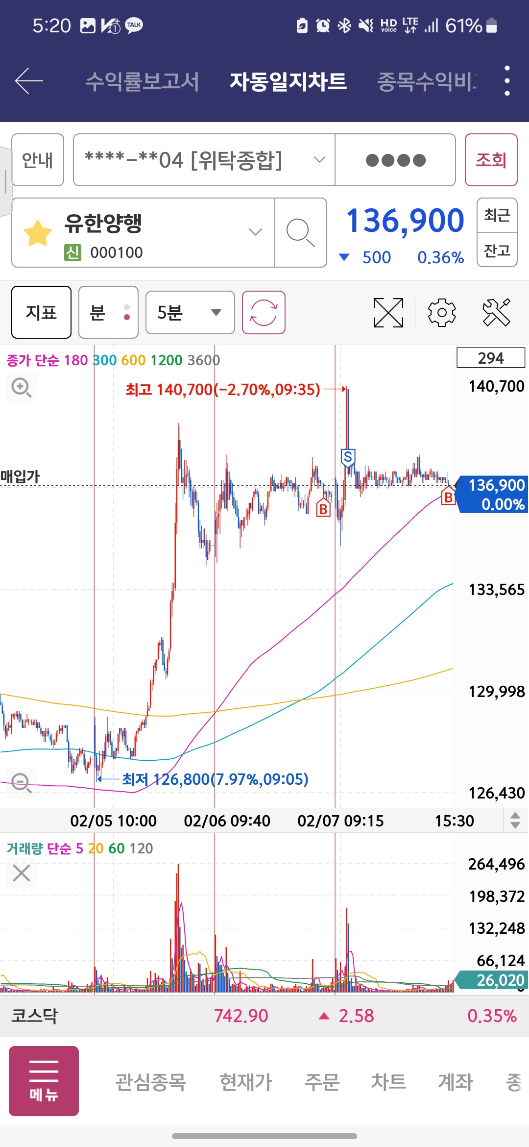 바이오주들도 수급이 좋은데 유한양행은 차트 만들어가는것도 보이고 전고점 돌파도 얼마 안남아서 3일선 부근에서 종베하고 다음날 빠지면 더 사야겠다고 생각했는데 미리 매수를 걸어두지 못해서 큰 시세차익은 못내고 3% 분할매도 걸었는데 수급이 부족해서 그냥 약익절로 마무리했다.