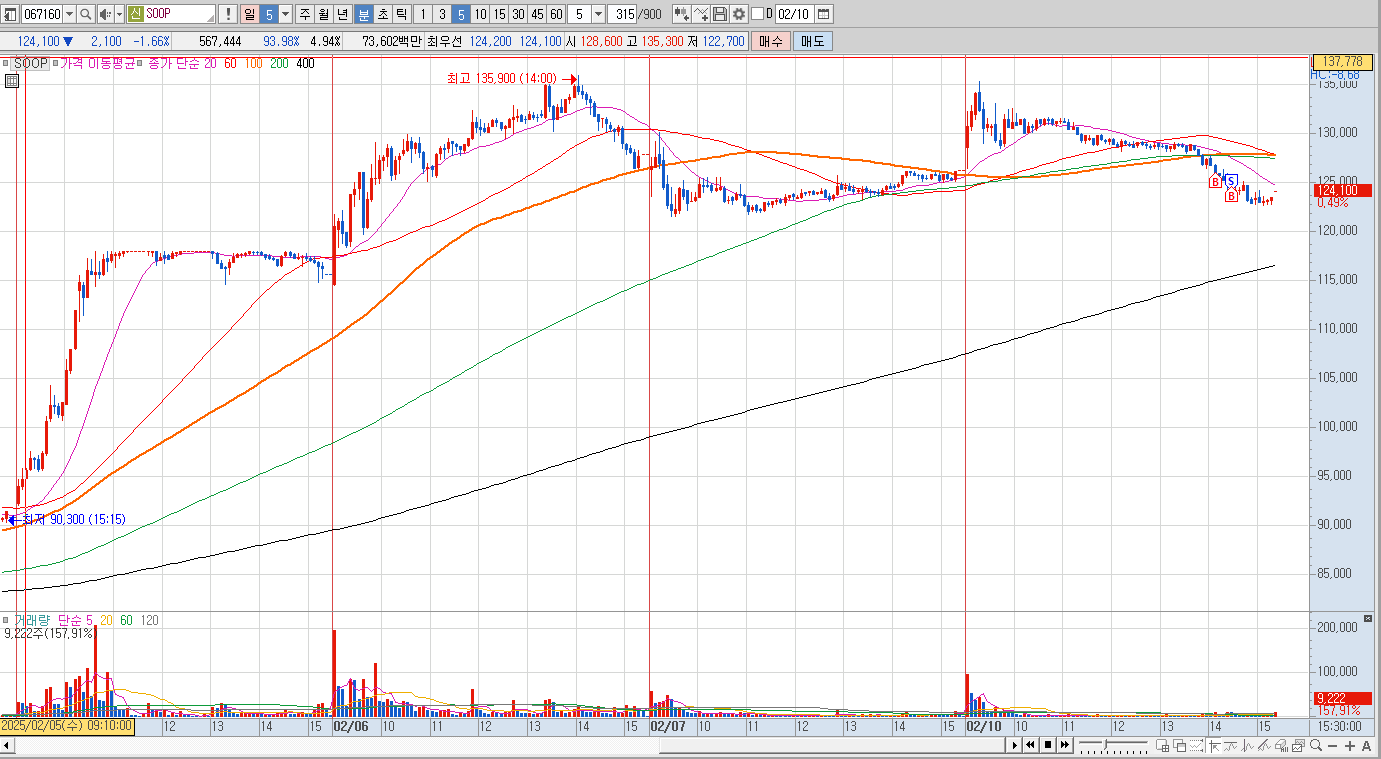 급등 이후에 5일선 닿는 자리기도 했고 AI + 방송 관련해서 테마 붙어서 순환매 관점으로 수급 들어올거라 생각했는데 실패했다. 차라리 애매한 테마하기보다 수급 확실한 다른 테마(유리기판, 로봇) 쪽으로 투자하는게 나은 선택인 것 같다.
