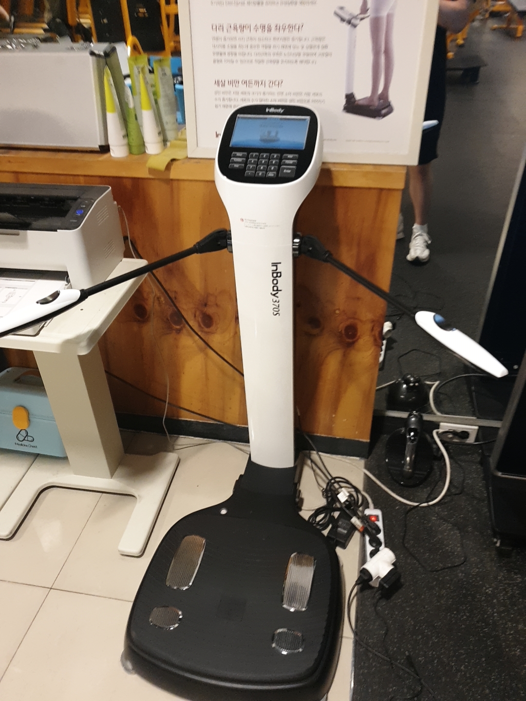 위 사진에서 보이는 인바디 기계에서 인바디 검사를 시작할 거에요!