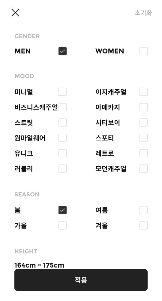 여기서 본인이 원하는 스타일을 찾고 싶으시다면 좌측 상단에 깔때기 모양을 누른 후 필터를 적용해보세요!