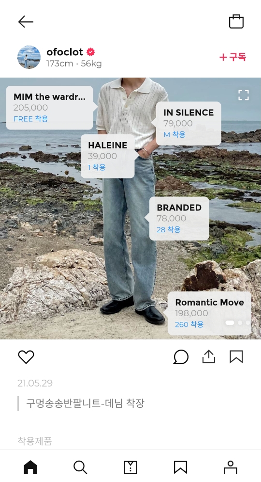 저는 룩을 확인하는 용도로만 어플을 사용하고 있지만 옷에 관심이 많고 본인이 옷을 잘입고 남들에게 보여주고 싶다 하시는 분들은 회원가입 후 스타일을 뽐내보는것도 좋아보입니다ㅎㅎ
