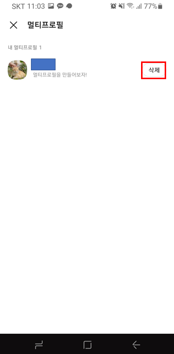 편집 버튼을 누르는 순간 본인 멀티프로필 계정 우측에 (삭제) 버튼이 생긴 것을 확인할 수 있습니다.