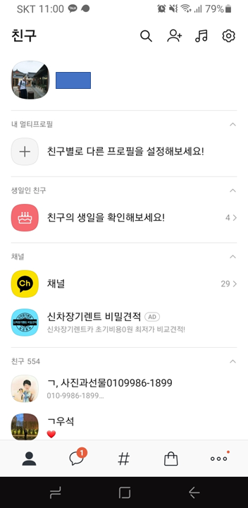 아주 간단하죠? 멀티 프로필을 만들었으니 이번엔 멀티 프로필을 적용할 친구 관리에 들어가 주세요!