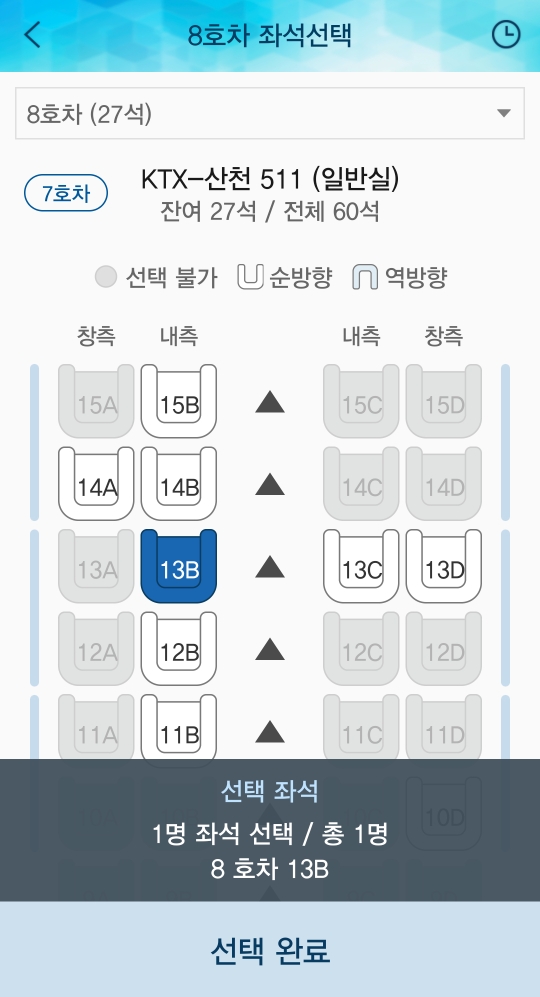 좌석선택입니다. (충전이 필요하신분은 창측에 콘센트가 있으니 참고하세요ㅎㅎ)